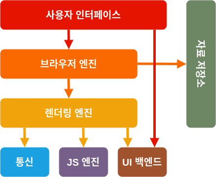 -브라우저 엔진: 사용자 인터페이스와 렌더링 엔진 사이 제어